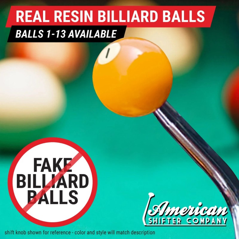 American Shifters Bank Shot series of billiard custom shift knobs isnt just about cool nostalgic bling for your car. These professional resin based billiard balls feel and work great because they have weight! They work better at the top of your shift arm than plastic or aluminum OEM knobs. Just ask someone who uses them.