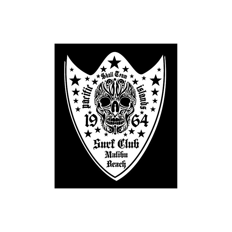 American Surf Club Malibu Beach Skull Sport Car Bumper Sticker Decal 4" x 5"