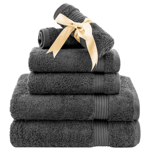 American Veteran Towel, 6 Piece Towel Set for Bathroom Clearance Prime, 100% Cotton Turkish Bathroom Towels, 2 Bath Towels 2 Hand Towels 2 Washcloths, Dark Gray