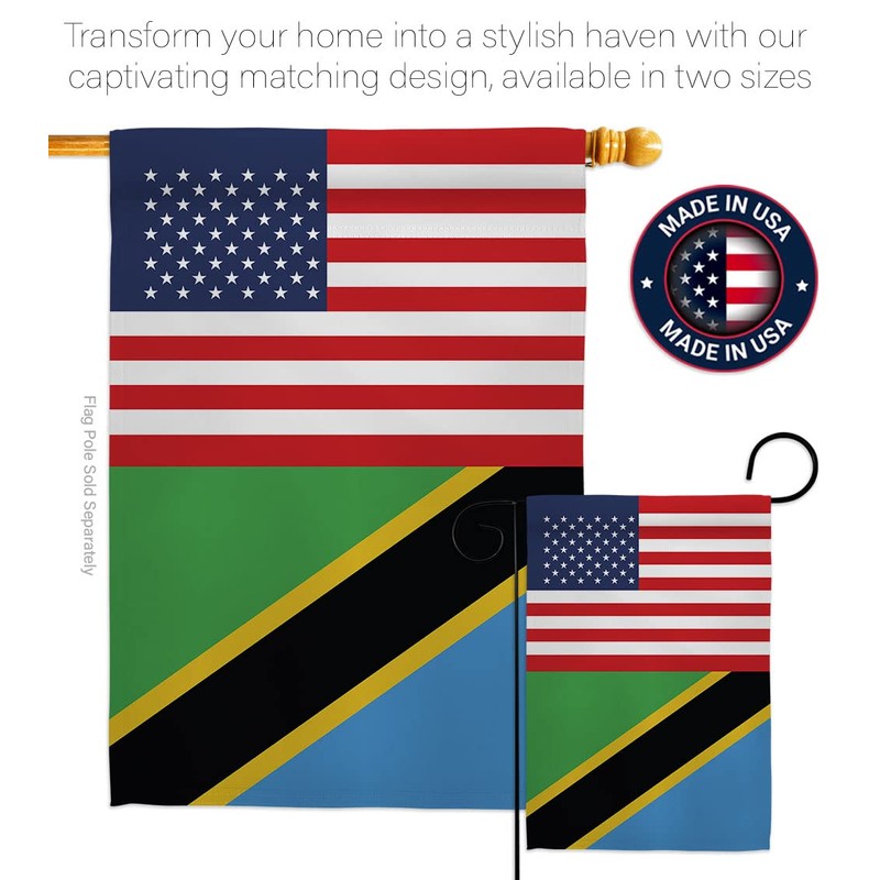 Americana Home & Garden Tanzania US Friendship House Flag Regional Nation International World Country Particular Area Decoration Banner Small Garden Yard Gift Double-Sided, Made in USA
