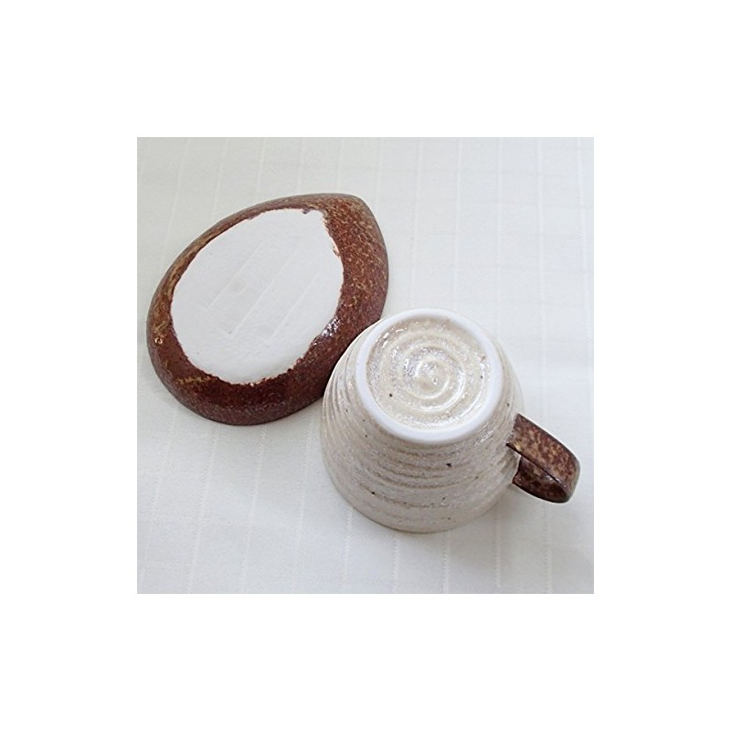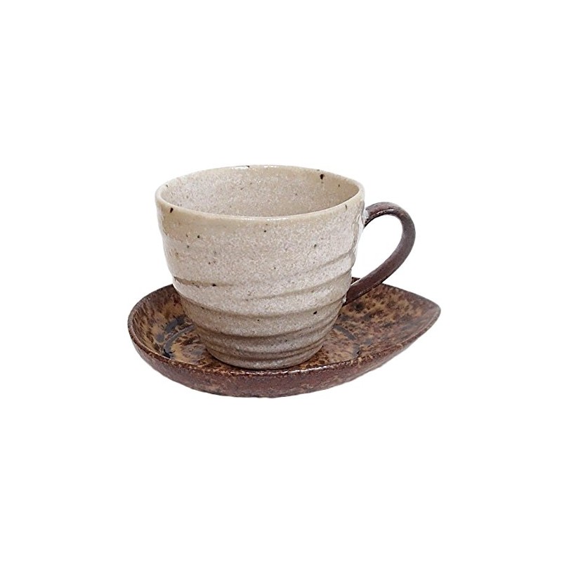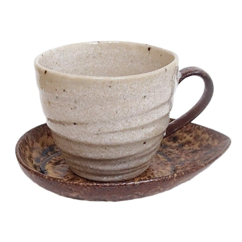 Simple design coffee cup and saucer with color and shape like almond. The large size allows you to use it for a bowl, soup cup or ice coffee cup. The product name is based on the windy dunes. On a wide dune, the base is yellowed like beige, white as sand flows, and the opposite places where it collects black Inspired by nature like that. It looks like a white glaze over yellow and black, but the glaze is hung individually by artisans, so it is not the same and has a rustic look.