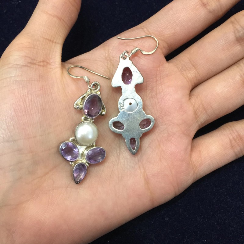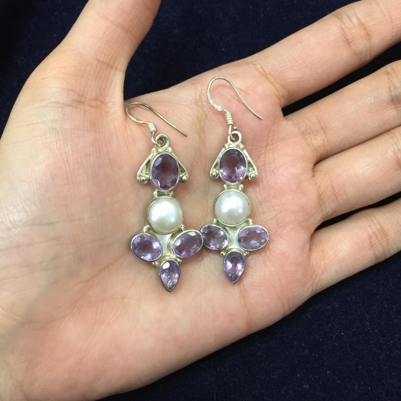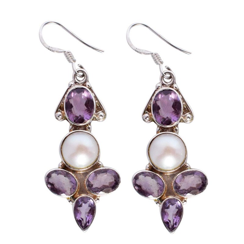 - Ohrring-Maße: Edelstein-Name: Amethyst, Perle, Edelsteinform: Birne, oval, rund, Edelsteingröße: 7 x 5 mm, 8 x 6 mm, 6 x 4 mm, 9 mm, Edelsteinfarbe: Lila, Weiß, Ohrringlänge: 53 mm, Ohrringbreite: 18 mm, Ohrringhöhe: 6,5 mm, Gesamtgewicht der Ohrringe: 11,8 g. Beschichtungsart: weißes Rhodium, Metallart: massives 925er-Sterlingsilber
