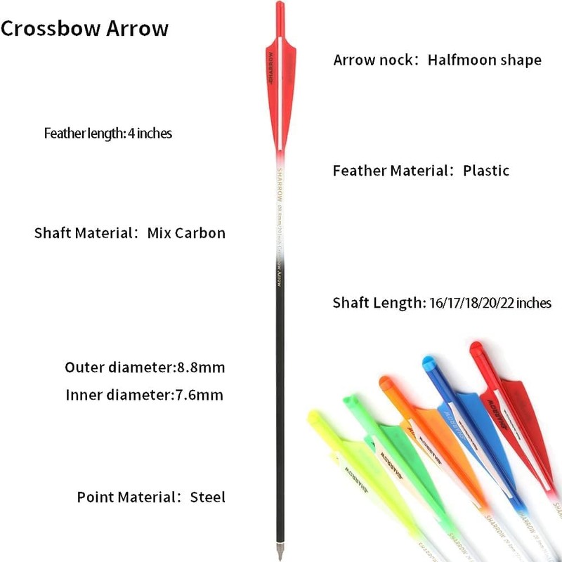 - Precision Shooting: Crossbow arrows' carbon-mixed materials and well-designed arrows ensure a stable flight trajectory and excellent shooting accuracy. Let you accurately hit the target when shooting, improve your shooting skills, and become a shooting master!