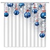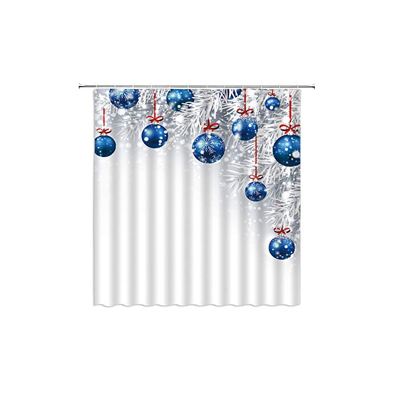 AMFD Merry Christmas Shower Curtain Blue Xmas Ball White Snowflake Pine Leaves Winter New Year Fabric Bathroom Decor Set Include Hooks,(70" WX70 H)