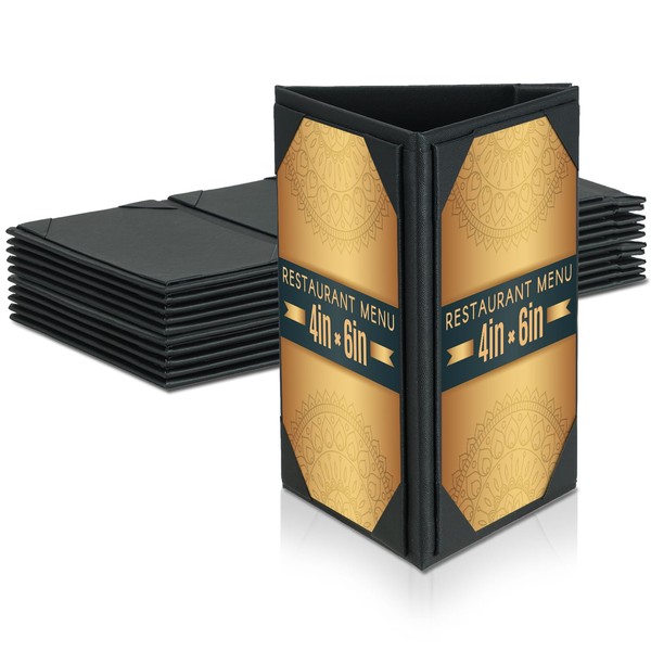- Ideal for Various Settings: Perfect for displaying specials, drink menus, or dessert options, these 3-sided menu holders suit restaurants, hotels, bars, cafes, or weddings. Available in 4" x 6" (10.8 x 15.8 cm) and 5" x 7" (13 x 18 cm) sizes with multiple pack options.