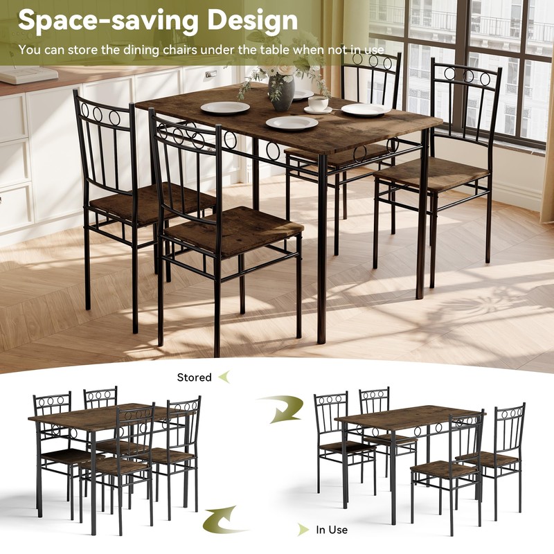 AMICLIBER 5 Piece Dining Table Set, Wood Kitchen Table and Chairs for Small Space,Breakfast Nook,Easy Assembly,Brown
