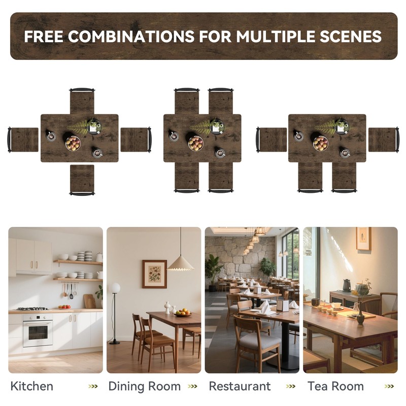• 【Space-Saving Dining Table Set】 Perfect for apartments and small spaces, this compact dining table set comfortably seats 4 people. Its smart design maximizes functionality without compromising style, making it ideal for cozy breakfast nooks or studio apartments.