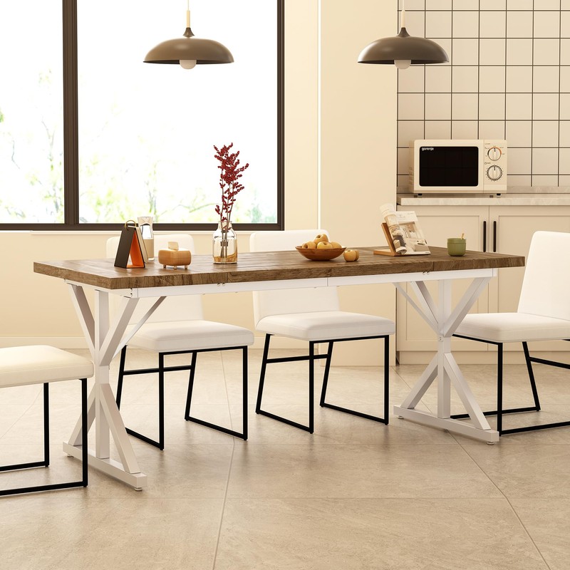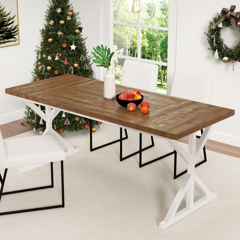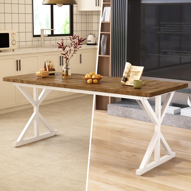 - 【Multifunctional Kitchen Table】: This versatile Farmhouse Dining Table can also be used as a kitchen table, computer desk, or conference table. It's perfect for the kitchen, living room, and dining room, allowing you to create memorable moments with your loved ones.