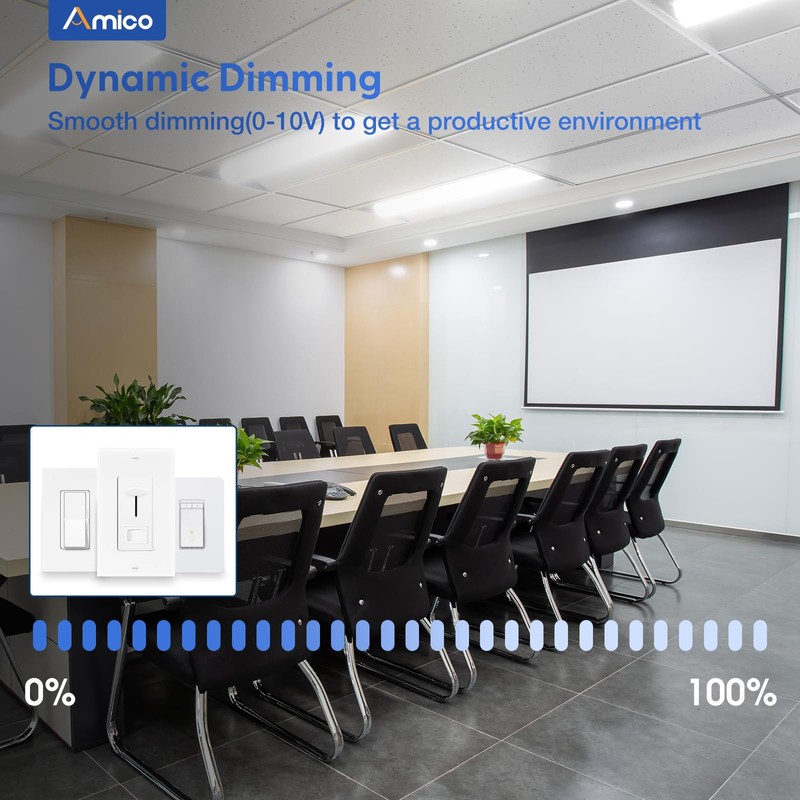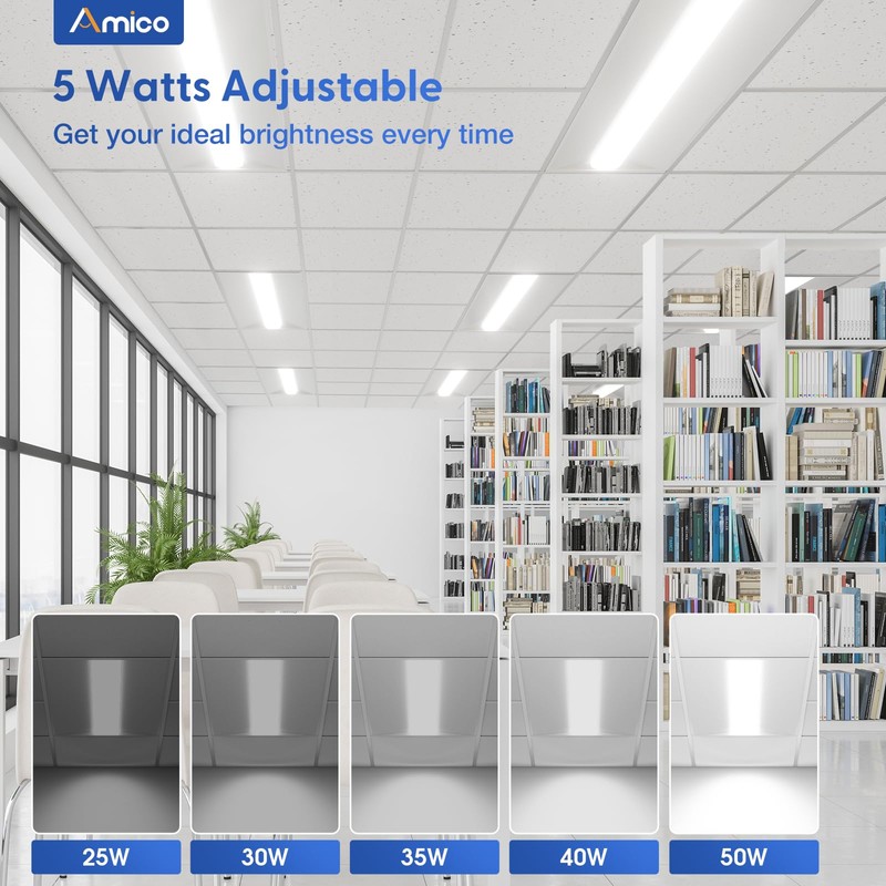 Amico 1 Pack 2x4 LED Troffer Panel Light with 3000K/3500K/4000K/5000K 4CCT Selectable, 7000LM, 50W/40W/35W/30W/25W Adjustable, 0-10V Dimmable LED Flat Panel Troffer Light for Drop Ceiling, ETL/DLC