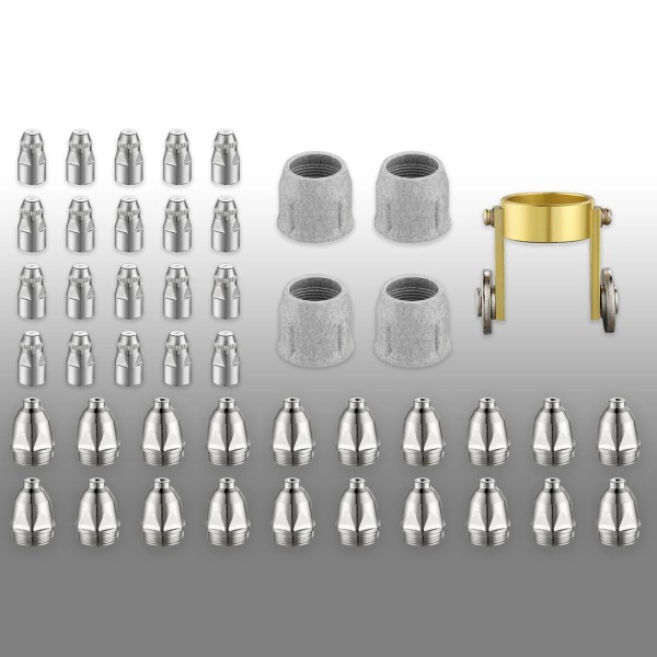 · Total of 45-pieces of 80-120A P80 Consumables: 20-pieces Electrodes, 20-pieces Shunts, 4-pieces Bakelite cups and 1-pieces Torch Roller Guides.