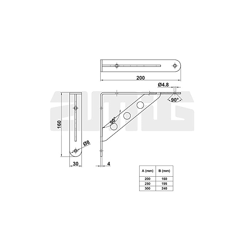 Amig 15207 Angled Pause Set Square Bracket 200 x 160 mm Black