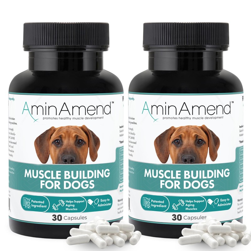 AminAmend Muscle Support Dog Supplements for Large Breed (21lbs+) with CaHMB & Vitamin D3 – Supports Strength, Mobility & Daily Activity for All Ages & Senior Dog – (30 Capsules, 2-Pack)