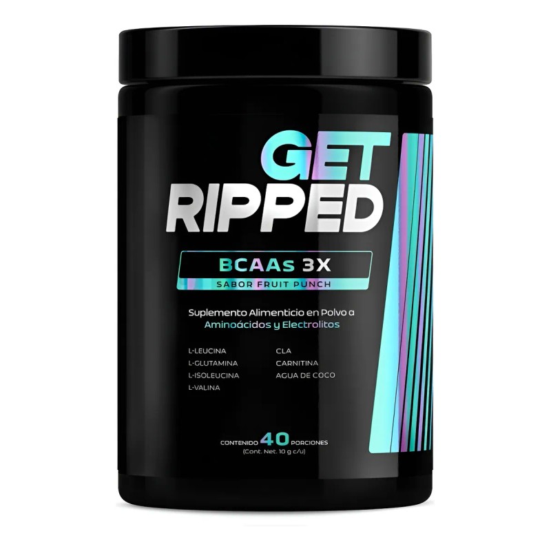 • BCAAs 3X Get Ripped es un suplemento alimenticio que tiene una fórmula avanzada a base de Aminoácidos y Electrolitos. Contiene: L-Leucina, L-Glutamina, L-Isoleucina, L-Valina, CLA, Carnitina y Agua de Coco.