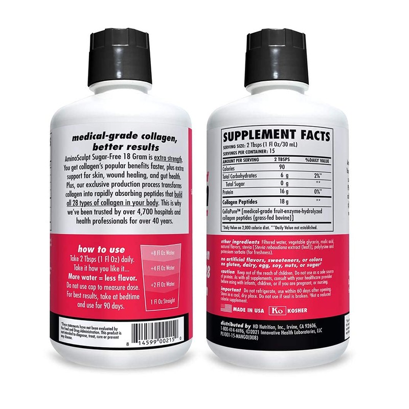 - AMINOSCULPT SUGAR-FREE: Our collagen supplement is truly a medical-grade liquid collagen protein. It is perfectly predigested into the smallest peptides for the best absorption. It is highly concentrated and ready-to-drink (NO NEED TO MIX!) for your busy life.