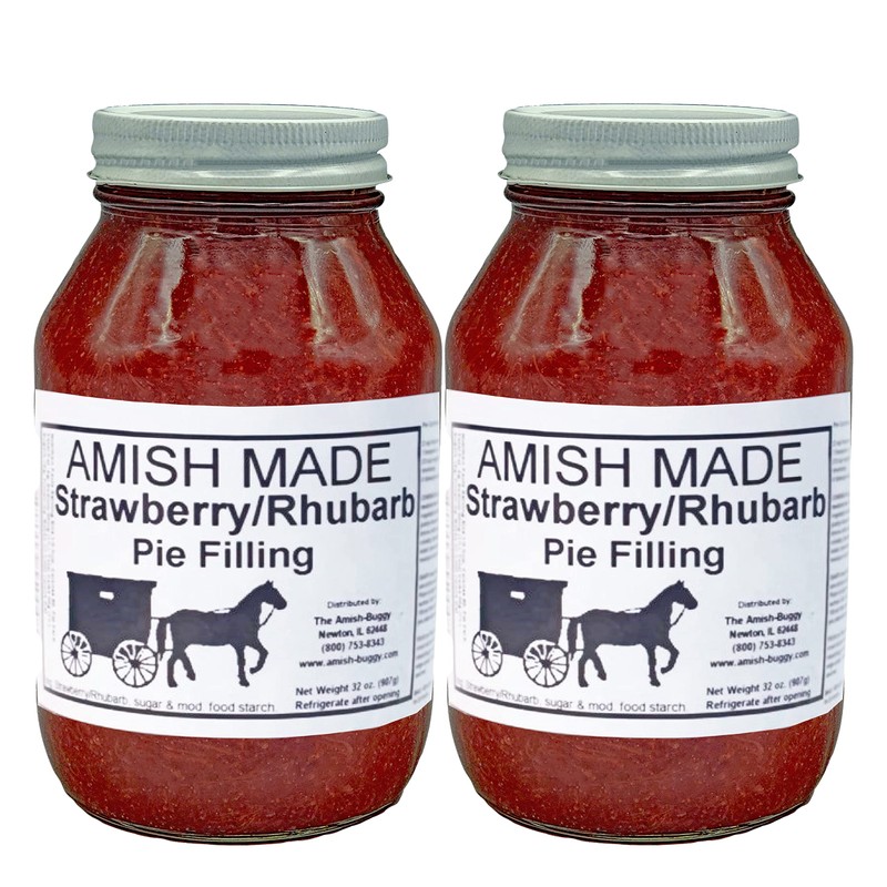 Amish Pie Filling Strawberry/Rhubarb and Topping - TWO 32 Oz Jars