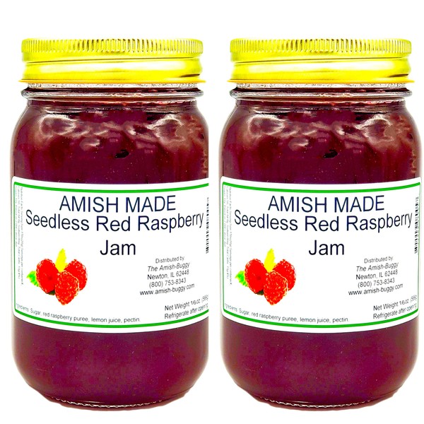 Amish Seedless Red Raspberry Jam - Two 16 Oz Jars