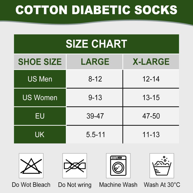 - High-Quality Cotton Material: Our diabetic socks are made from 90% cotton, 5% spandex, and 5% rubber, ensuring maximum comfort and breathability. The pure cotton material is soft and gentle on the skin, making it ideal for sensitive feet and daily wear.