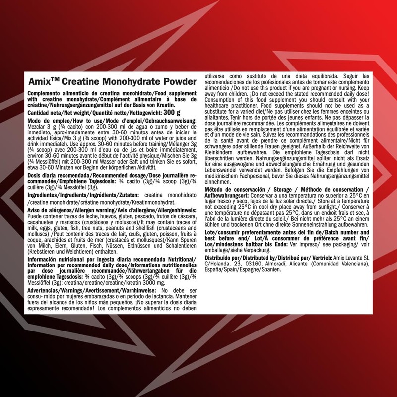 - FREI VON VERUNREINIGUNGEN. Bei Amix garantieren wir die Qualit?t und Sicherheit unseres Produkts dank des ?HPLC CONTROL-Systems, das Verunreinigungen aus Creatin Monohydrat vollst?ndig eliminiert.