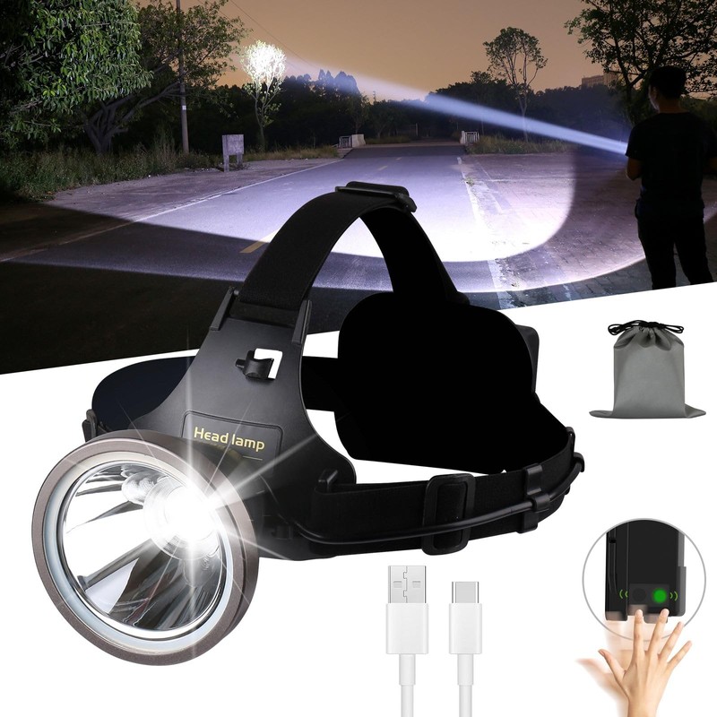Amkulop Long Range Spotlight Headlamp,Super Bright USB C Led Rechargeable Head Lamp with Battery Power for Adult- Motion Sensor Headlamps Flashlight Waterproof Searchlight for Hunting,Fishing,Hiking