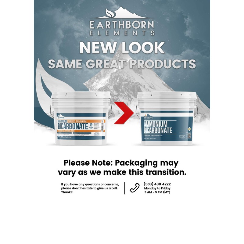 Earthborn Elements Ammonium Bicarbonate Powder (1 Gallon), Baker’s Ammonia, Flat Baked Goods, Leavening Agent, Resealable Bucket