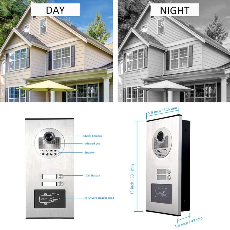 - ✅ CMOS camera IR night vision high resolution door monitor camera, The Outdoor doorbell is constructed using a full aluminum front panel for protection from vandalism, while waterproofing protects from the elements.