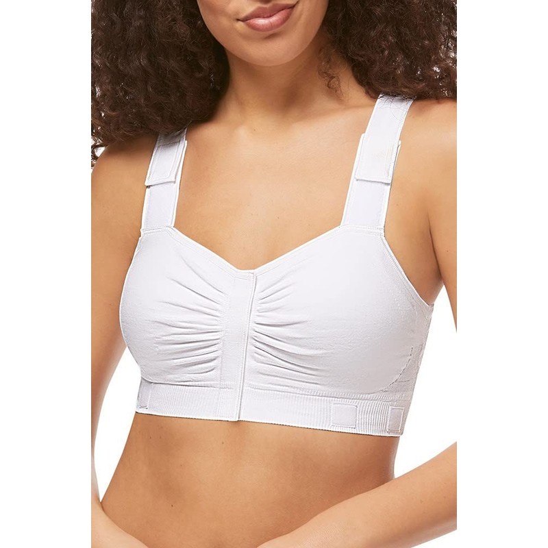 - Seamless soft cotton post surgery compression bra features hook-and-loop fasteners on front closure and straps that allow for easy access to treatment areas without full undressing.