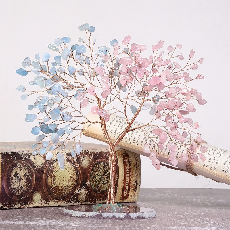 - Romantic Crystal Tree: This crystal tree is formed by 2 intertwined crystal tree trunks. They are closely connected, sharing with the same agate base. Just like the people in love, supporting each other, facing the future together, and never get apart. The tree comes with a gift box. It is a good present for your important one.