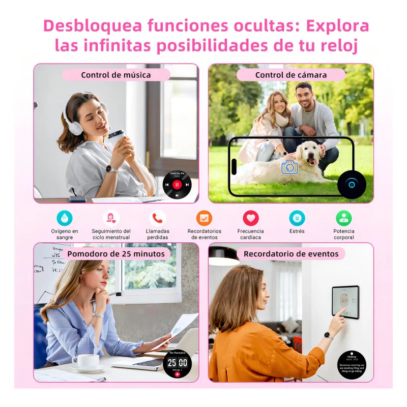 - Pantalla AMOLED, reloj mundial, temporizador Pomodoro, recordatorios de eventos y otras funciones adicionales.