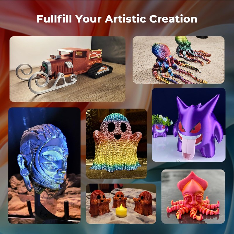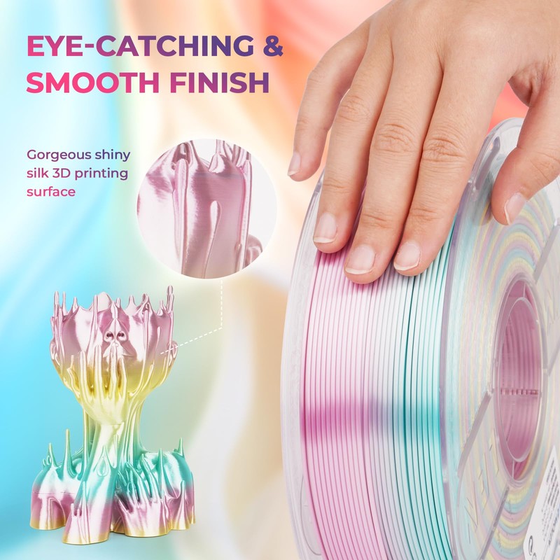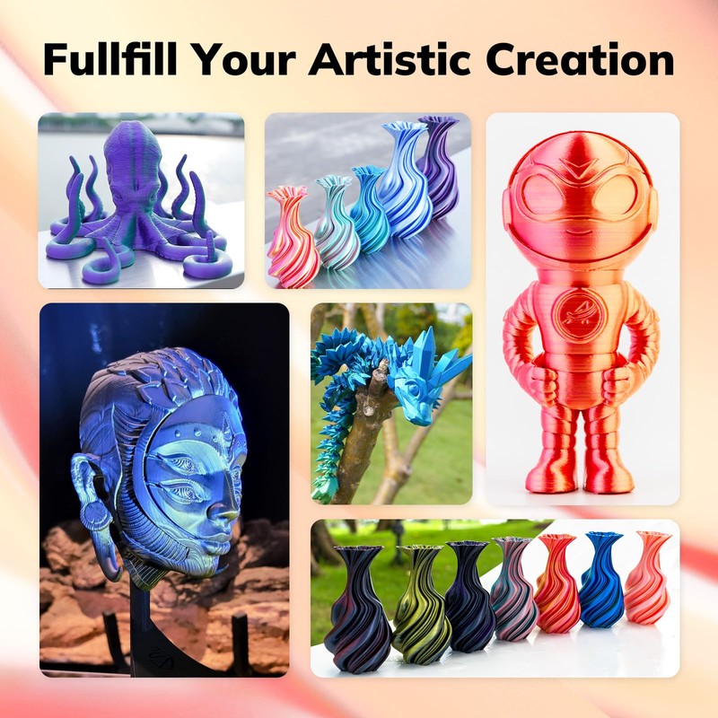 - You can print beautiful multicolors in one PLA filament bundle, silk glossy smooth appearance, perfect for arts, crafts, DIY. Beginner & expert friendly