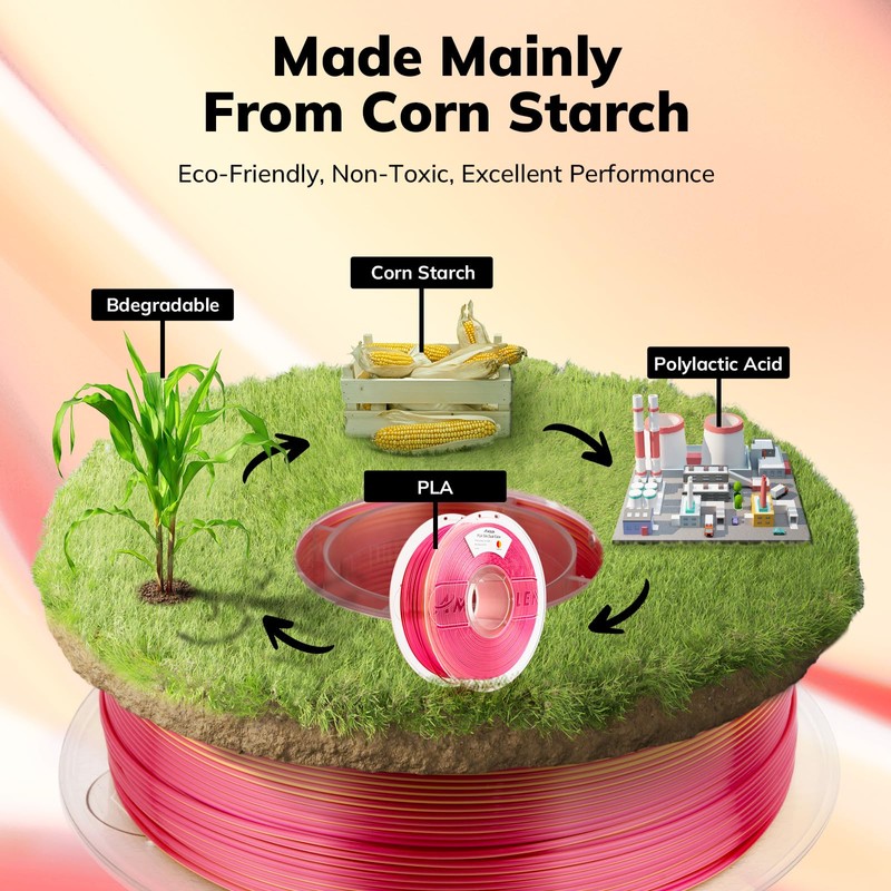 - Achieve flawless prints with shiny silk dual color PLA filament, engineered for ease of use and exceptional precision
