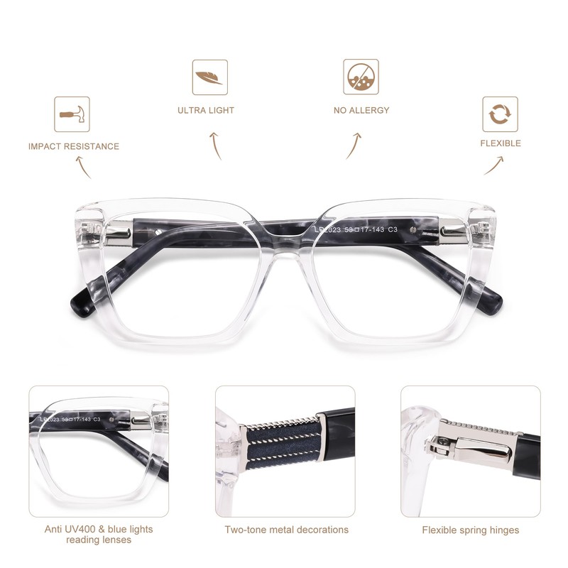 - DESIGN FEATURE:When it comes to eyewear,this style playful aviator square lenses are the perfect way to make your outfit shine. Clear plastic is key here, giving the wearer an unobstructed view of their best features.HINGEs give this style the comfort and flexibility to rise to any occasion.