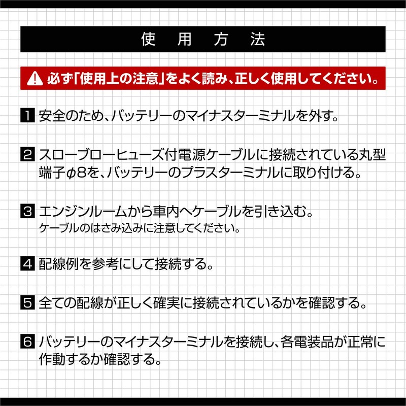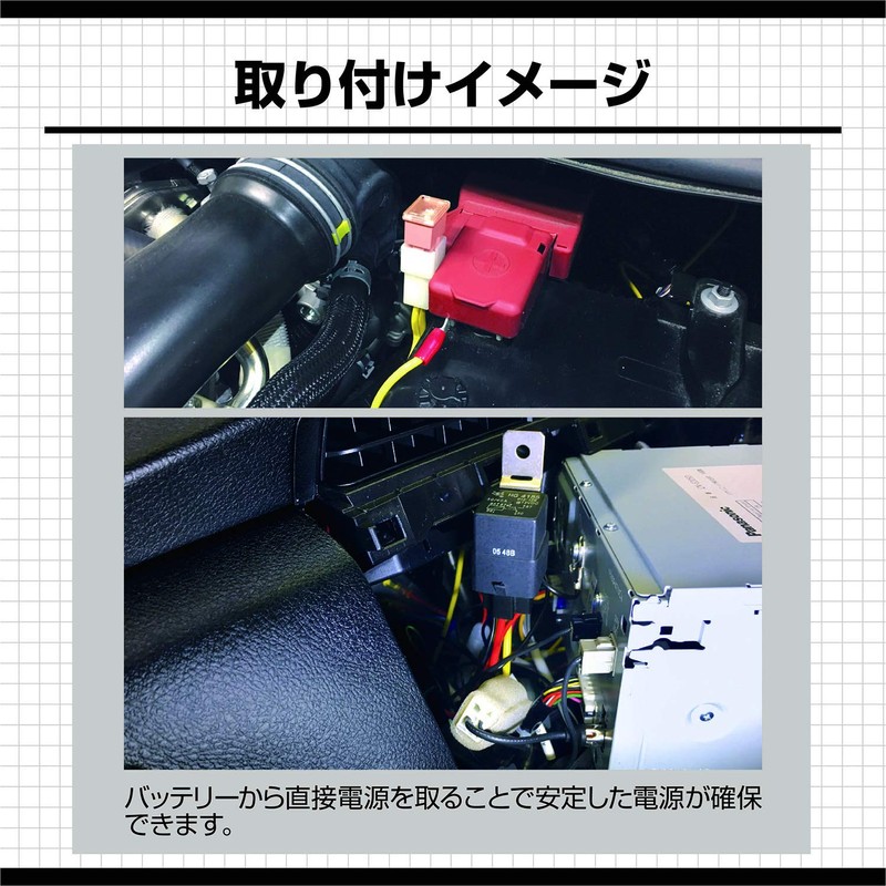 • The relay allows you to turn on and off the power source from the battery (at all time) with the accessory power supply