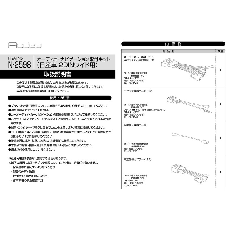 amon AODEA audio/navigation system installation kit for NISSAN vehicles/2DIN wide N-2598