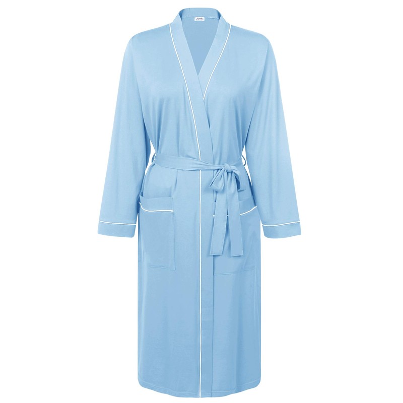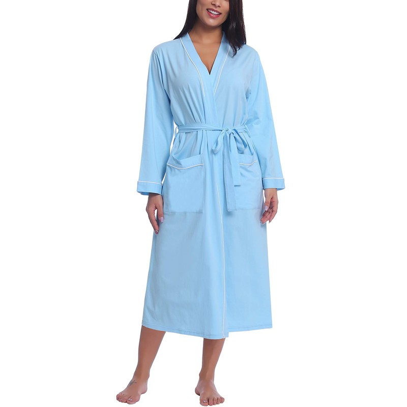 Amorbella Women Robe Long Bathrobes Lightweight Light Blue Large