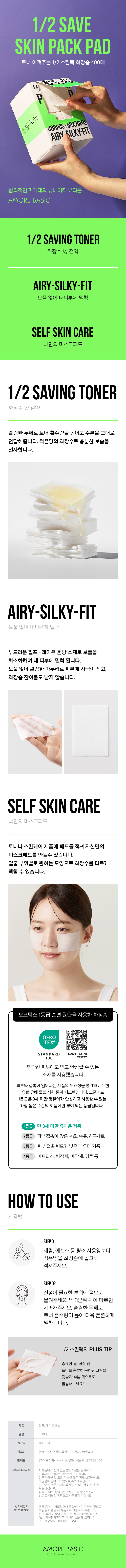 Amore Basic Toner-Saving 1/2 Skin Pack Cotton Pads, 400 Sheets / 아모레베이직 토너 아껴...
