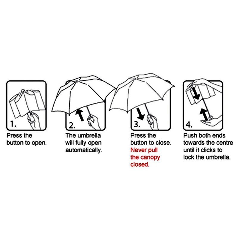 - Compact folding umbrella; Automatic Open and Close push button
