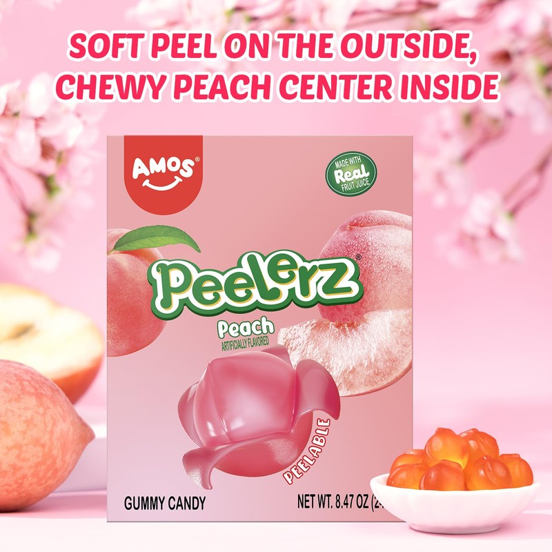 Amos Peelerz Gummy Peach Peeling Candy, Peelable Fruit Snacks