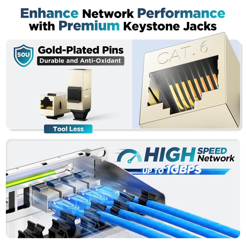 - Future-Proof:Compatible with a wide range of keystone jacks and support for high-speed Ethernet connections,meeting evolving networking demands and technology advancements