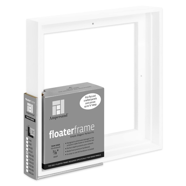 Ampersand Art Supply Floaterframe Readymade Frame for Flat and 7/8" Deep Wood Panel and Canvas Artwork, Paintings, Prints, and More, 10"x10", White Thin