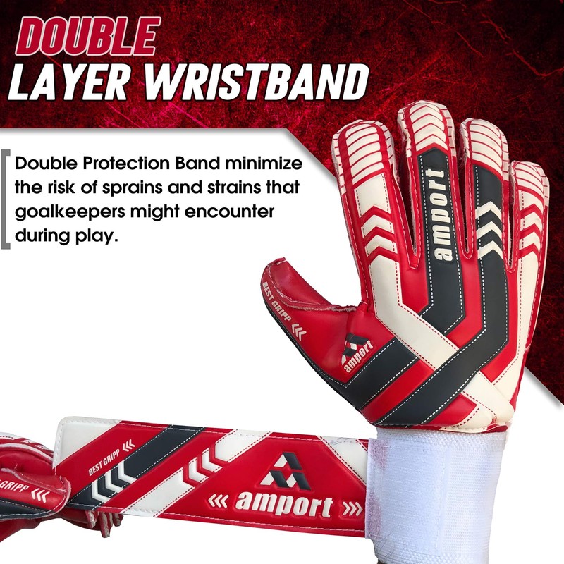 amport Goalkeeper Gloves – Finger Spine Protection, Hybrid Cut & Wide Double Layer Wristband – Unique Designed, Best Grippy and Consistent Palm Grip Goalie Gloves for Kids, Youth & Adult