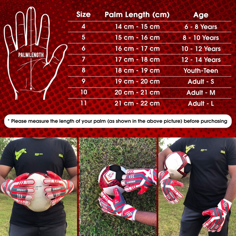 - [ Unique Designed for Unisex ] We are experienced in producing Premium Quality Goalkeeper Gloves in an affordable price, both for Males and Females, from junior trainees to high School, all the way to Adult Goalkeeper whether in training or match. For the Accurate Fit please refer to the size chart in Images section.