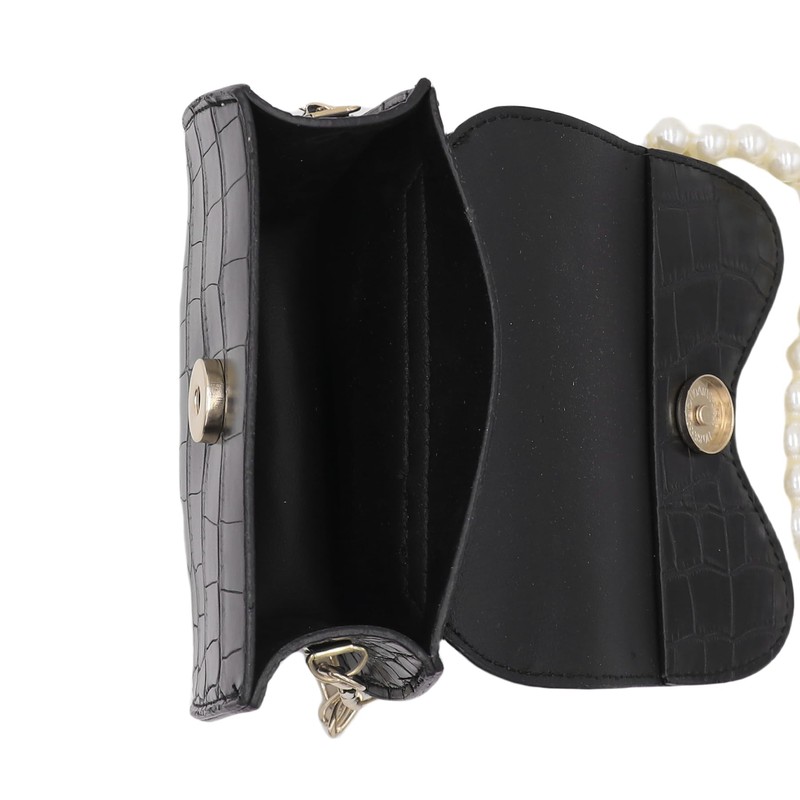 AMPOSSTO Bow Crossbody Purse for Girls Little Girls Kids Small Cross Body Bag Pearl Chain Strap Shoulder Bag Handbag Black