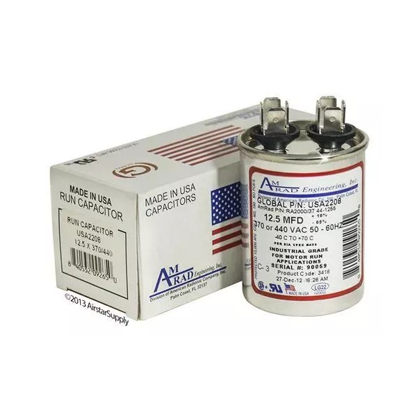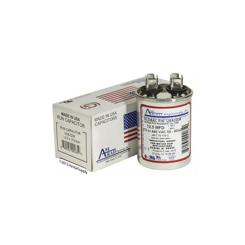 Amrad 12.5 MFD x 370 / 440 VAC Round Run Capacitor AmRad USA2208 - Made in the USA