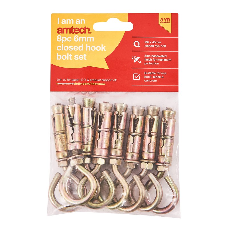 - HEAVY DUTY: These heavy duty 6mm closed hook bolts have a zinc passivated finish for maximum protection