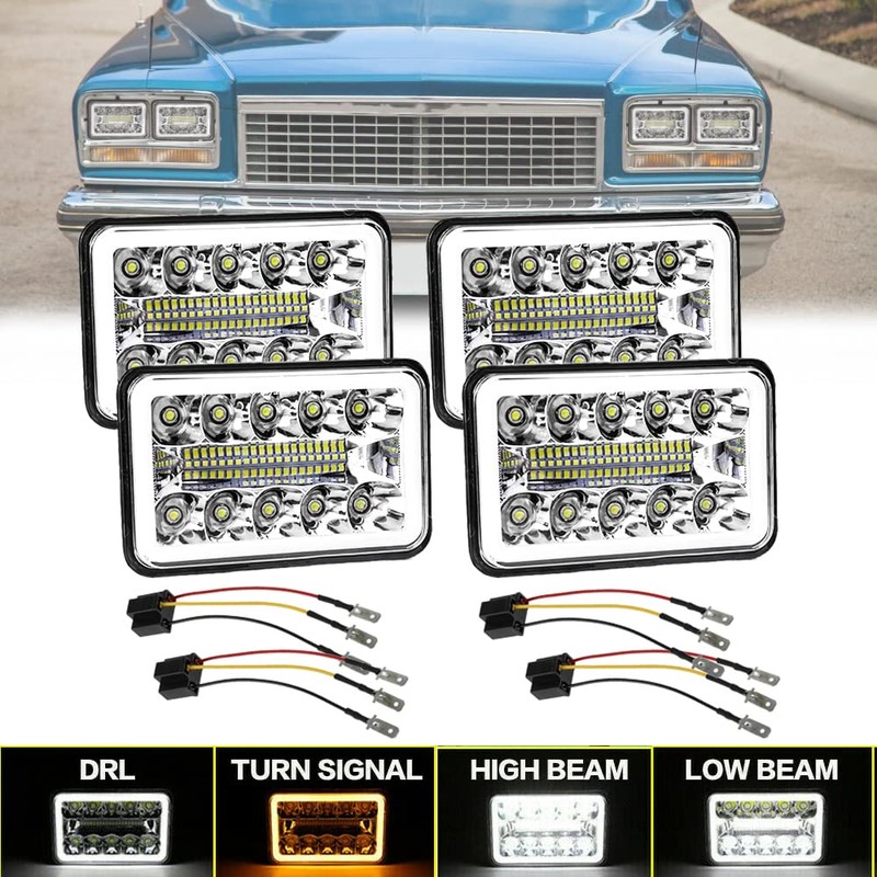AMUNIESUN 4PCS 4X6INCH LED headlight High Low Beam DRL Turning Signal Light Replace H4651 H4652 H4656 H4666 H6545 Lamp Compatible With Buick Electra/LeSabre/Regal/Riviera