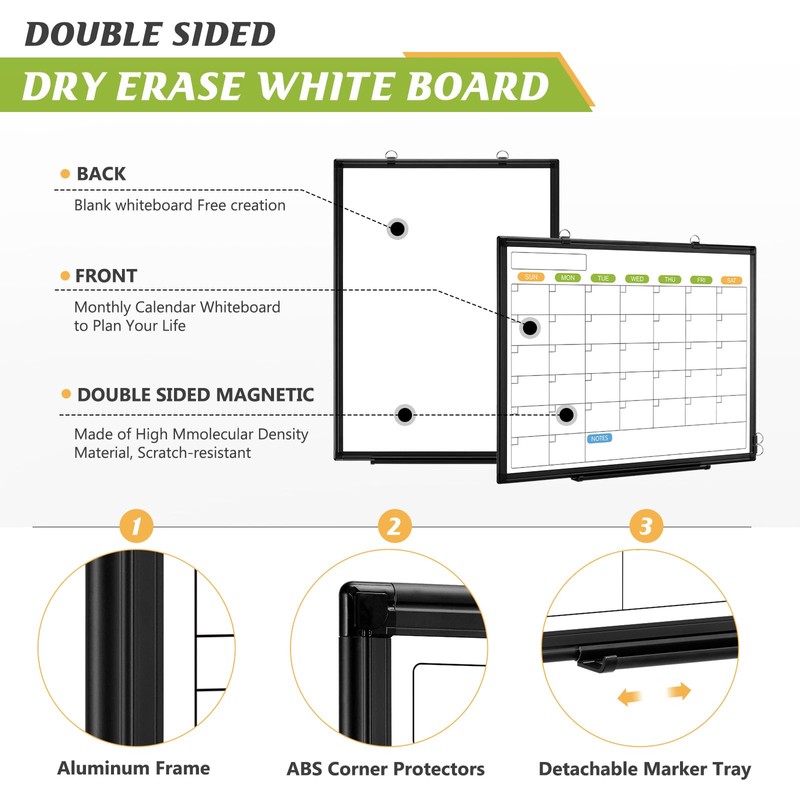 - Double-Sided Calendar Whiteboard: The dry erase calendar for wall has a smooth surface, ensuring the smoothness and clarity of writing, and the dry erase calendar can be easily cleaned without leaving stains. Dry erase board calendar are a great choice for home, school, office, group teaching, kitchen, dormitory and classroom