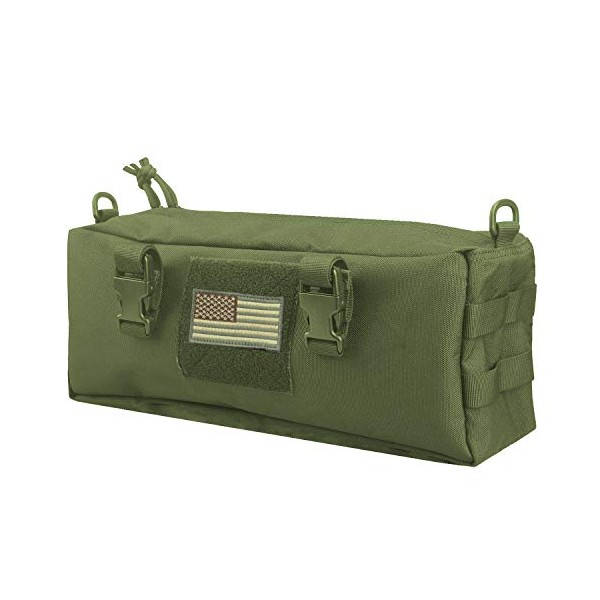 • ★Made of durable materials. The Molle pouch Dimensions Approx: 6"H x 14"L x 4"W. The D-ring Dimensions Approx: 3.3" x 2.25"; The US patch Dimensions Approx: 2" x 3".