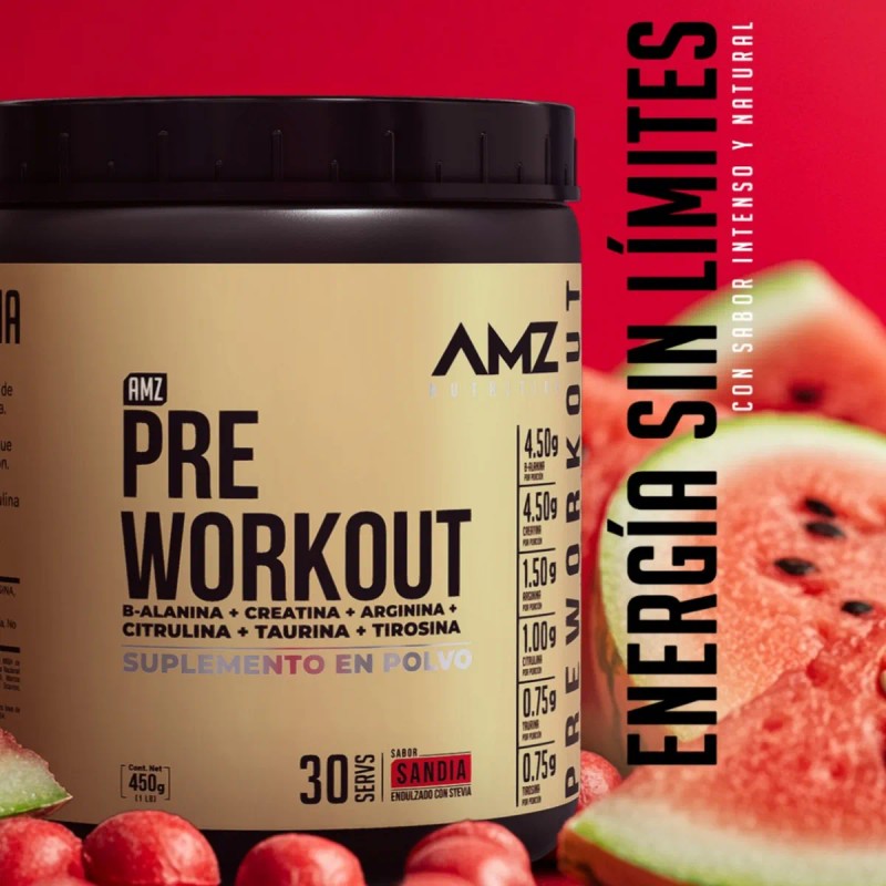 Amz Pre Workout Sabor Sandía 450 G 30 Servs Suplemento