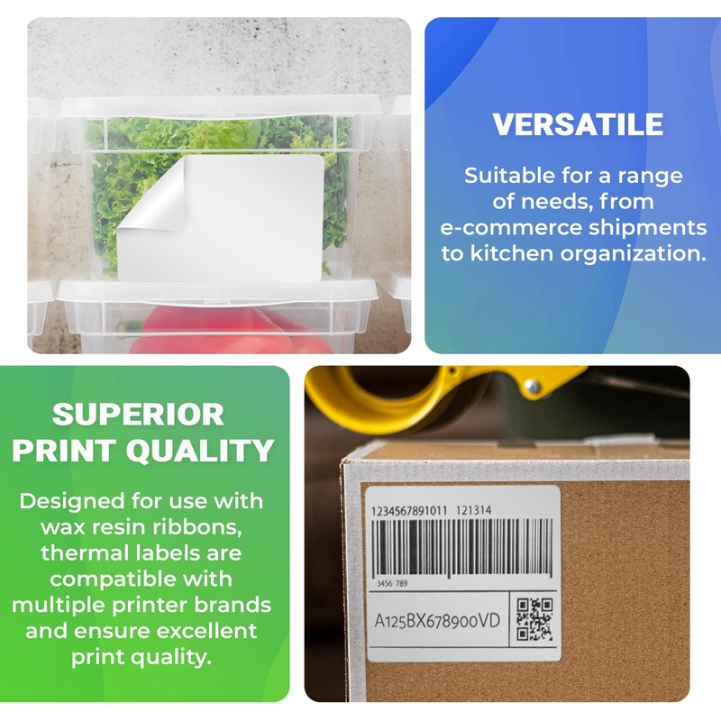 - SUPERIOR PRINT QUALITY: Thermal transfer printing labels offer superior quality for barcode and shipping information printing. Smooth surface ensures superior print quality. Durable and strong for commercial use and longer shelf life.
