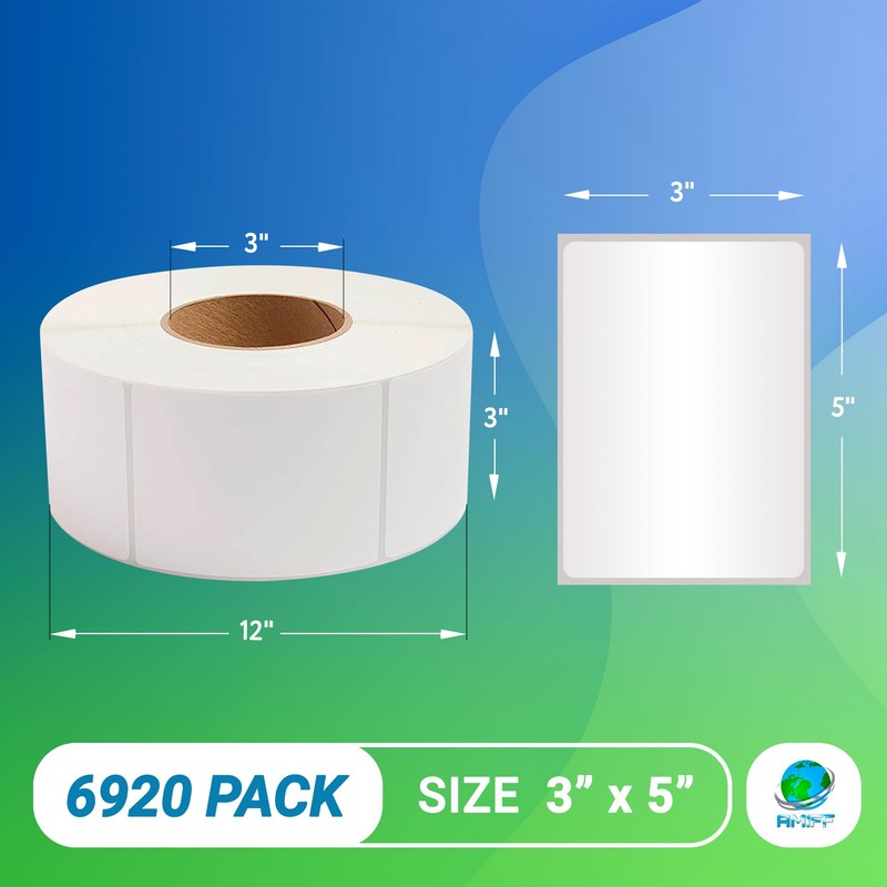 AMZ Supply 6920 Pack of Thermal Transfer Labels 3" x 5" Nonperforated 12" OD. Thermal Shipping Label with 3" core. Self-Adhesive Rolls. Mailing Postage. Printing Paper. Blank for Shipping, barcoding